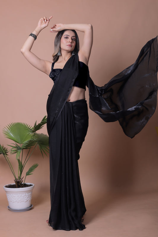 Elegant Black Shimmer Pure Satin Silk Two Tone Party Wear Saree