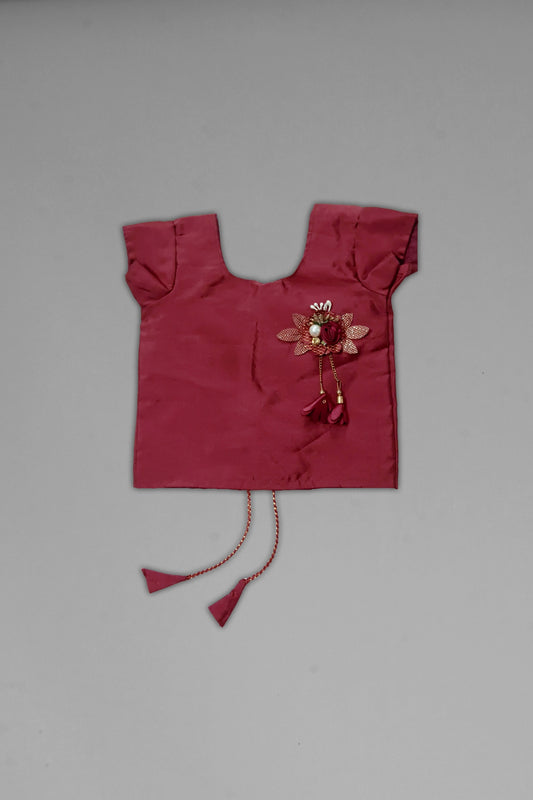 Baby Girls Jacquard Silk Traditionnal South Lehenga Choli With Brooch