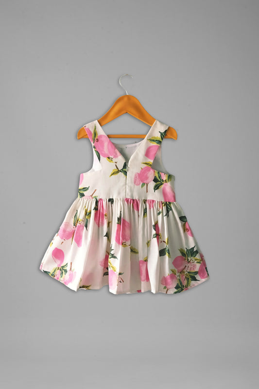 Baby Girls Fit & Flare Knee Length Floral Print White Frock Dress