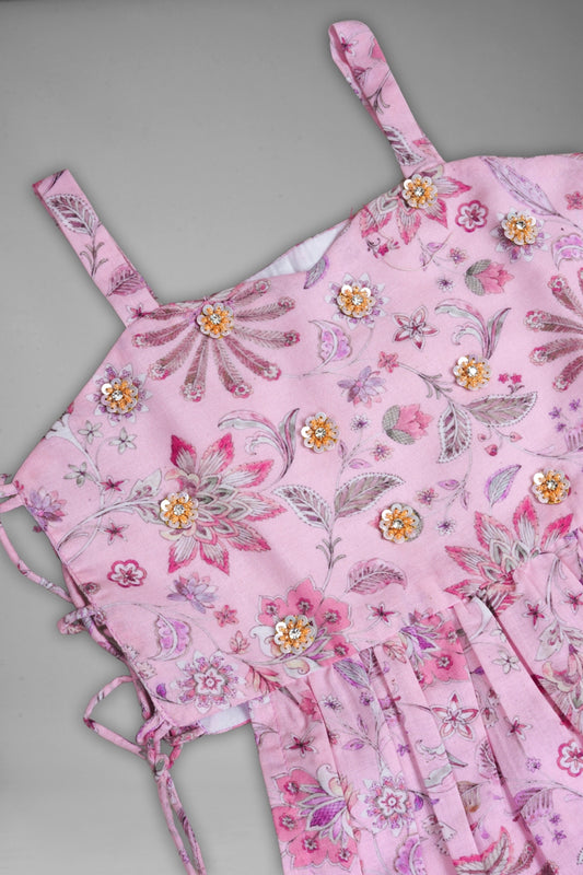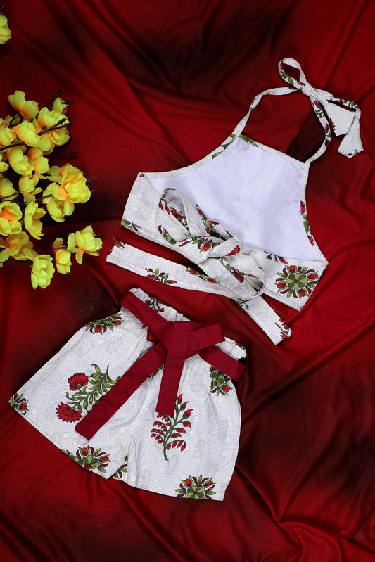 Baby Girls Floral printed Western Crop top and knee Lenth Clothing Set