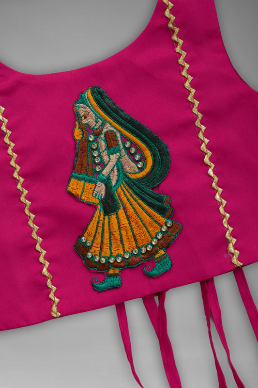 Baby Girls Rani Pink Full Flare Lehenga choli With Applique And Gota Lace Work