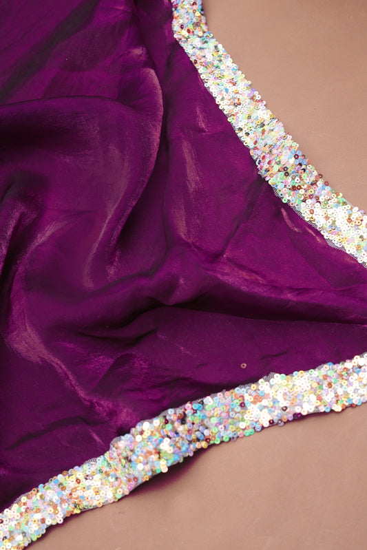 Designer Wine Purple Party Wear Chiffon Silk Saree with Sequence Lace