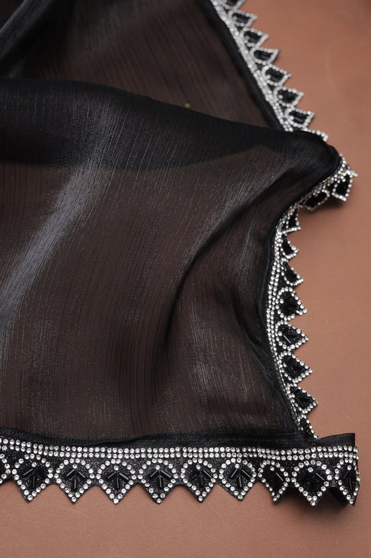 Elegant Black Party Wear Chiffon Silk Saree With Diamond Lace