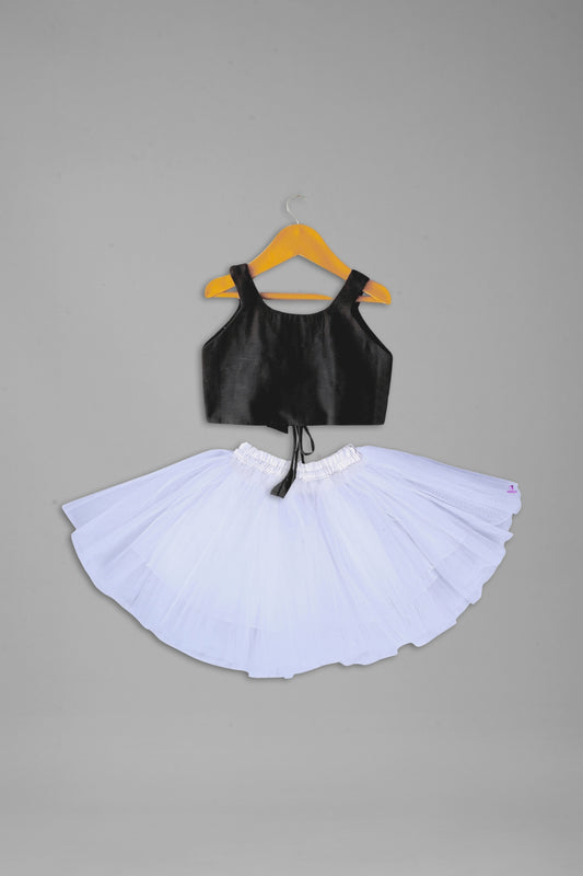 Baby Girls Black White Crop Top And Shoft Net Knee-Length Skirts Clothing Set
