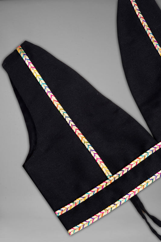 Girls Black Western Crop Top And Palazzo Set With Multicolor Lace