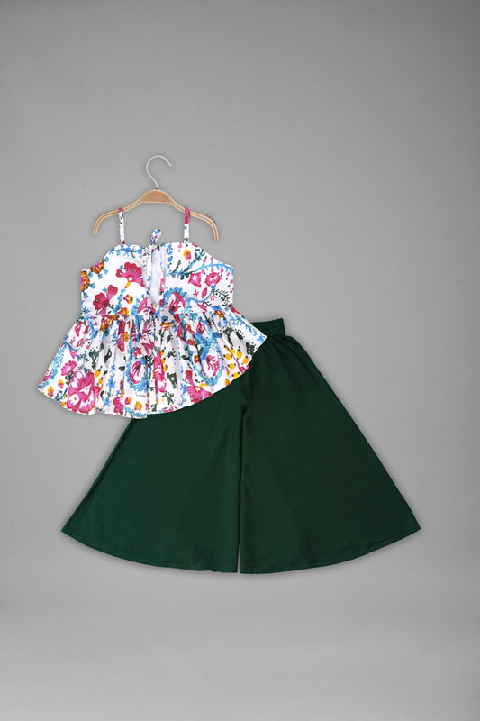 Girls Western Style Floral Printed Up Down Kurti And Palazzo Set