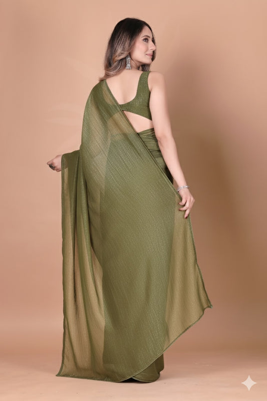 Elegant Light Mehndi Green Shimmer Tissue Silk Crunchy Party Wear Saree
