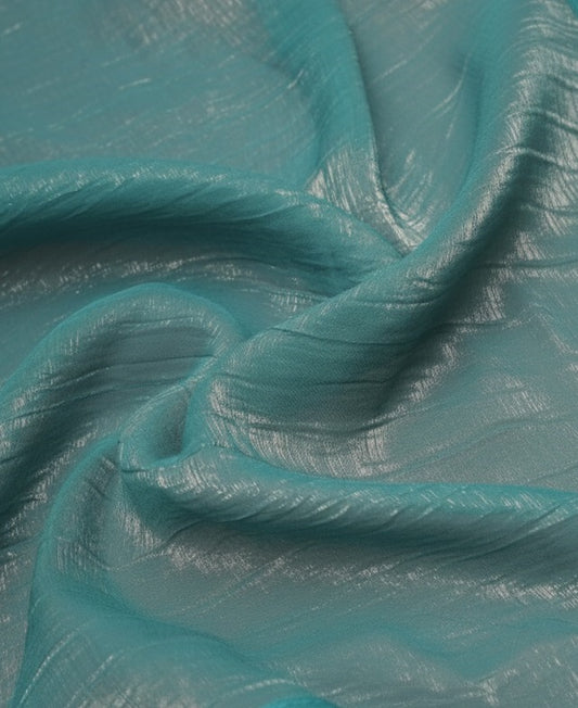 Elegant Ice Blue Tissue Silk Crunchy Party Wear Saree