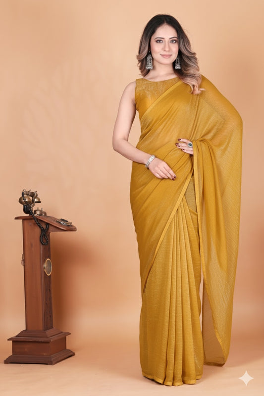 Elegant Light Musterd Shimmer Tissue Silk Crunchy Party Wear Saree